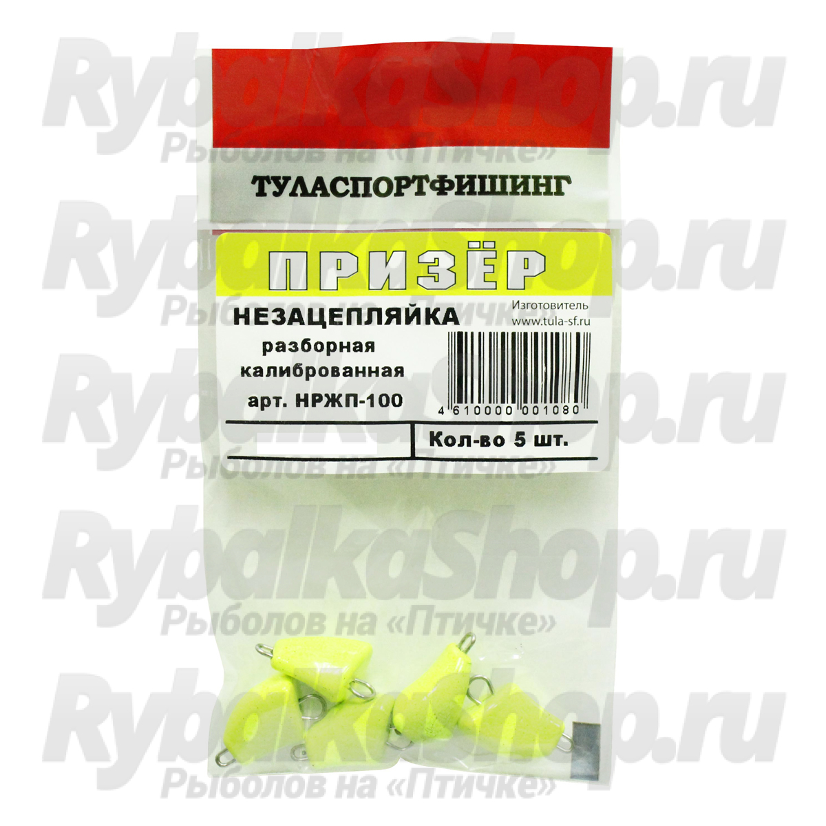 Груз Призер незацепляйка "Спорт" предлагается в широком диапазоне веса: от 1.5 до 32 грамм. Груза весом до 12 грамм включительно - упакованы в пакет, свыше 12 грамм - в блистер. В каждой упаковке независимо от веса находится по 5 грузов. Разборные грузы применяются для оснасток с офсетными крючками. Благодаря удачной конструкции незацепляек, очень просто и быстро возможно осуществить как замену самого груза в оснастке, так и смонтированного офсетного крючка.