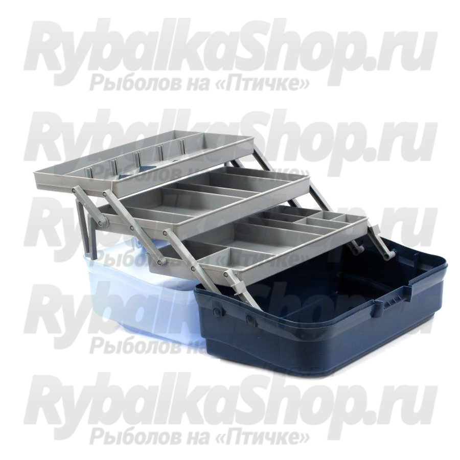 Ящик Nautilus 145 Tackle Box 3-tray. Рыболовный пластиковый ящик с удобной складной ручкой и тремя полками для приманок. На нижней, средней и верхней полке 9, 5 и 2 отделений соответственно. Три съемных перегородки в комплекте.