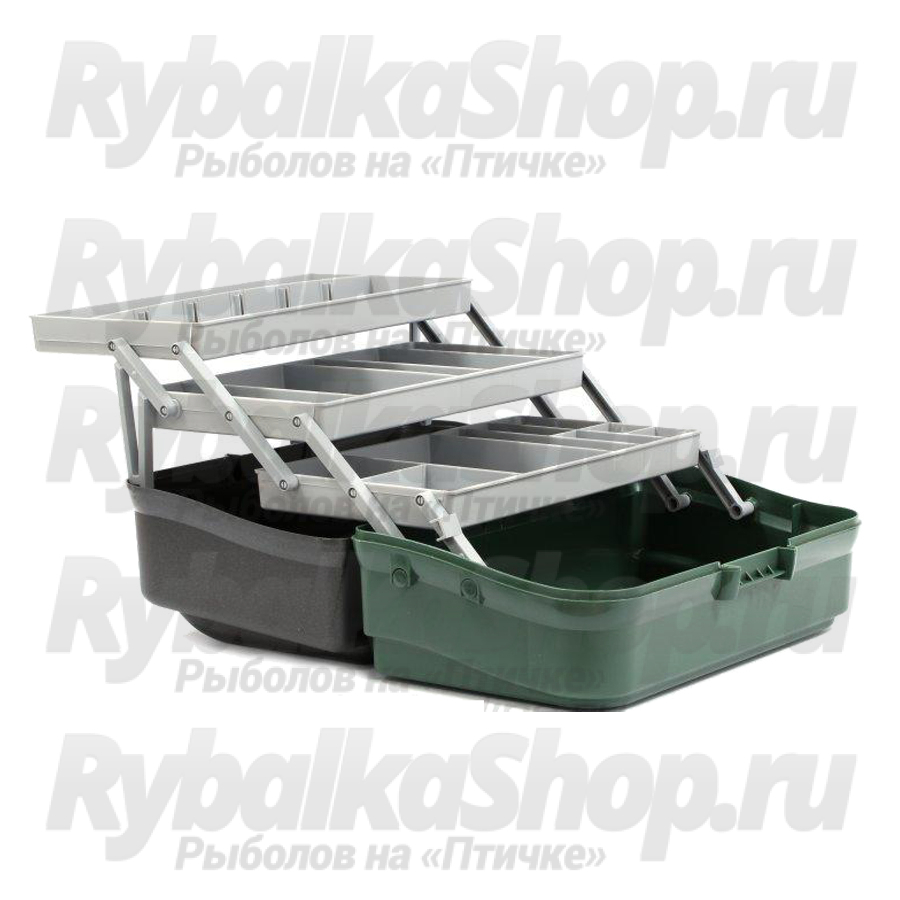 Ящик Nautilus 145 Tackle Box 3-tray. Рыболовный пластиковый ящик с удобной складной ручкой и тремя полками для приманок. На нижней, средней и верхней полке 9, 5 и 2 отделений соответственно. Три съемных перегородки в комплекте.
