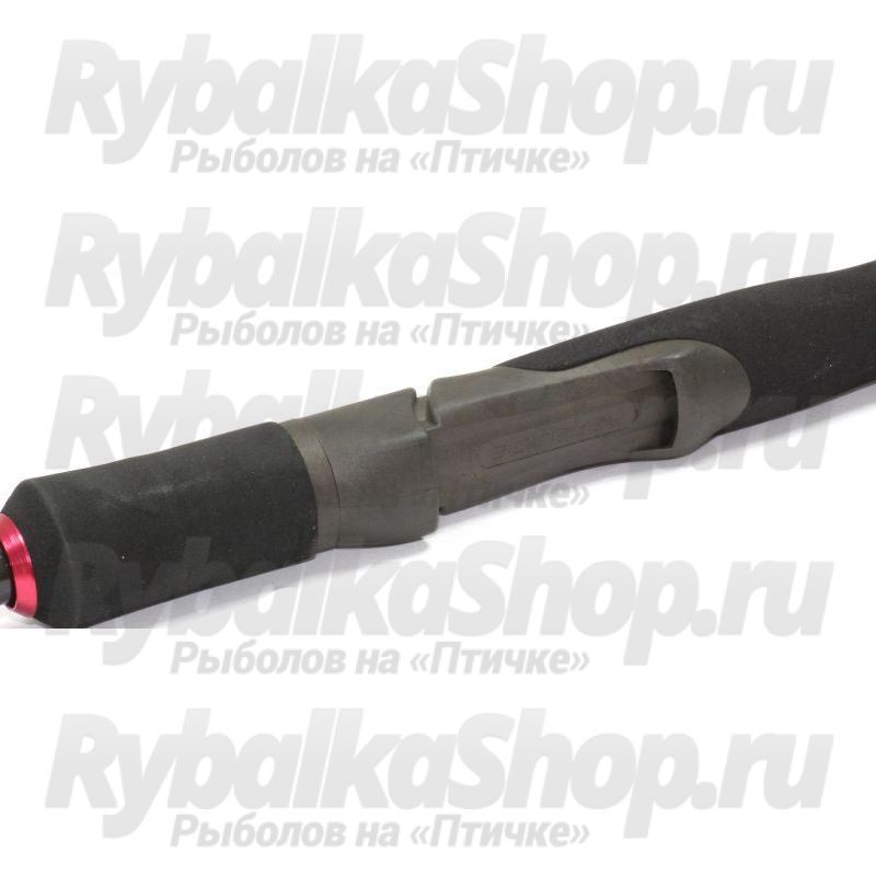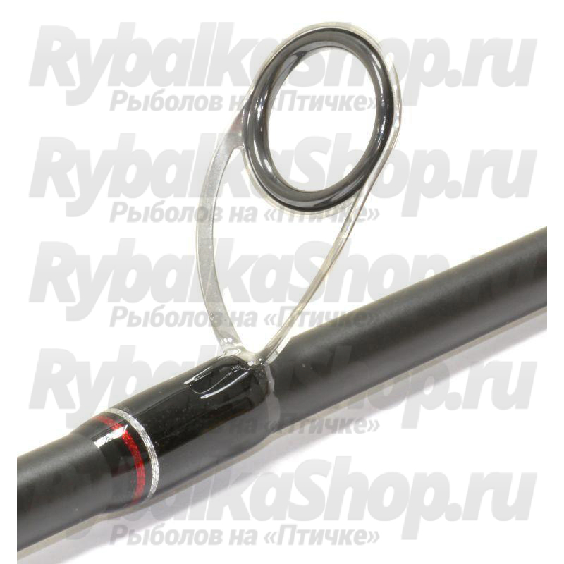 Рукоять разнесенная, достаточно длинная, что позволяет упирать её в локоть. Катушкодержатель устанавливается двух видов: один идет на облегченные удилища, другой на более тяжелый. Держатель теплый, со вставками из качественной Evа. Кольца противозахлестные, те самые, которые препятствуют запутыванию лески во время заброса. Раннинги маленькие, что позволяет создать сбалансированный бланк и облегчить вершинку, тем самым повышая её общую чувствительность.