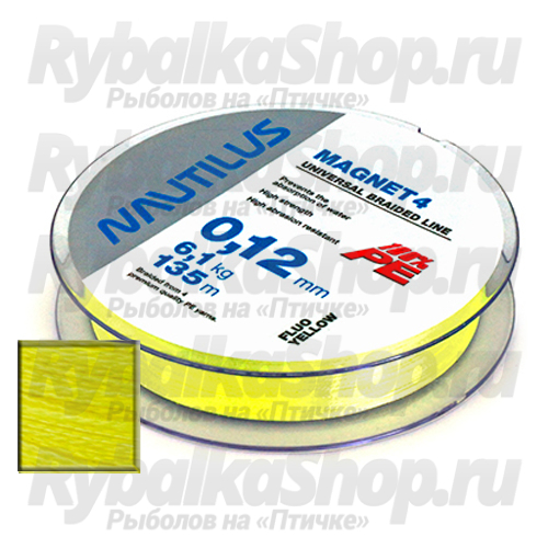 Шнур Nautilus Magnet 4 Yellow 135м - мягкая плетенка из четырех волокон РЕ. Шнур производится с применением самых передовых технологий, что позволило добиться отменных рабочих характеристик. Плетеный шнур Magnet 4 обладает превосходной чувствительностью, имеет практически нулевую растяжимость и не имеет эффекта памяти. Благодаря плотному плетению имеет очень тонкий диаметр, что позволяет заполнить шпулю катушки большим количеством шнура, что в свою очередь способствует увеличению дальности заброса.