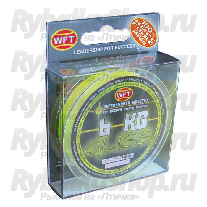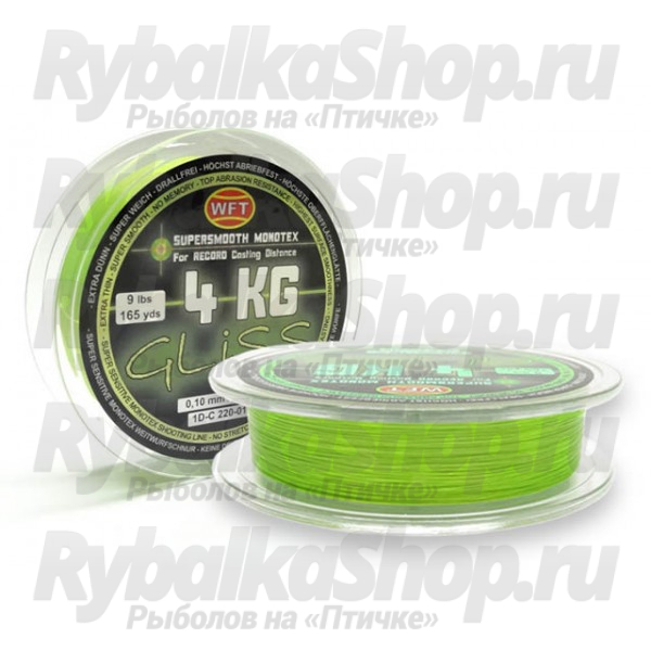 WFT Gliss создан для самых дальних забросов (дальность выше на 20-30%, чем с любыми другими шнурами). Шнур предназначен в основном для ловли в пресной воде без абразива на воблеры, топвотеры и другие поверхностные приманки. При ловле на джиг-головки рекомендуется ставить флюрокарбоновый поводок. Monotex Gliss почти не имеет памяти и обладает растяжимостью, близкой к абсолютному нулю, за счёт этого обладает фантастической сенсорикой.