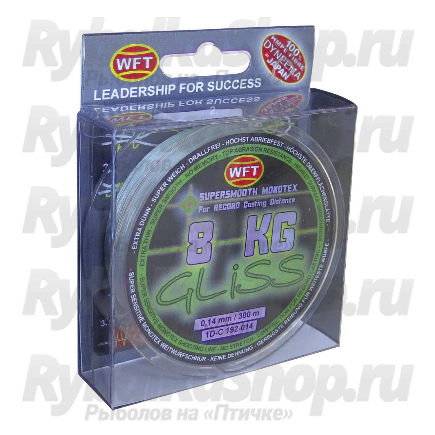 WFT Gliss создан для самых дальних забросов (дальность выше на 20-30%, чем с любыми другими шнурами). Шнур предназначен в основном для ловли в пресной воде без абразива на воблеры, топвотеры и другие поверхностные приманки. При ловле на джиг-головки рекомендуется ставить флюрокарбоновый поводок. Monotex Gliss почти не имеет памяти и обладает растяжимостью, близкой к абсолютному нулю, за счёт этого обладает фантастической сенсорикой.
