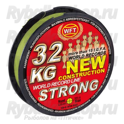 В 2015 году серия шнуров Strong была улучшена и получила префикс New Strong. Благодаря новому оборудованию плетение стало еще плотнее. Так же мы улучшили формулу покрытия для наших шнуров Strong - теперь цвет шнуров Strong сохраняется еще дольше и наши шнуры еще лучше защищены от истирания! Это еще одно топ-преимущество при глубоководной рыбалке на каменистых местах, рифах или водаемах с препятствиями. Шнуры серии Strong заняли уверенные позиции на мировом рынке, ведь именно на них поставлено более 15 мировых рекордов в I.G.F.A. Знаменитый чешский рыболов Якуб Вагнер использовал эти шнуры при съемках фильма «Охотник на пресноводных гигантов» для канала National Geographic и даже поставил несколько мировых рекордов именно с ним. Один из последних мировых рекордов I.G.F.A. в июле 2015 года поставил Dennis Verreet на шнур WFT Strong 51kg. поймав желтоперого тунца весом 230 фунтов (104кг).