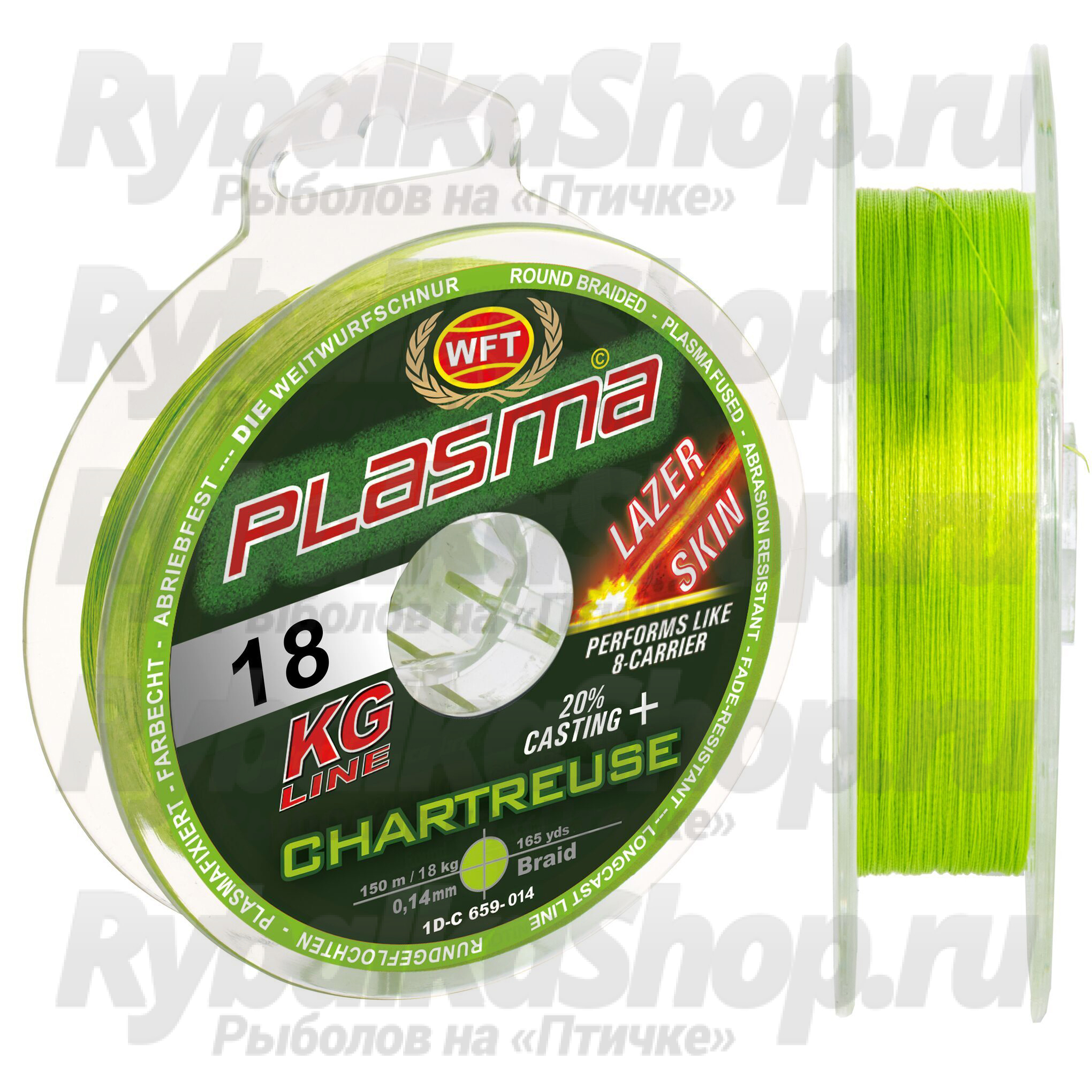 Высококачественный восьмижильный шнур плетеный WFT Plasma Chartreuse Lazer Skin 150m с лазерной обработкой. Chartreuse - цвет отлично видимый в условиях плохой видимости.