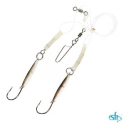 Монтажная система для морской рыбалки с двумя червями и двумя блеснами. Эта система представляет собой длинную леску диаметром 0.8 мм, с карабином на одной стороне и вертлюгом на другой. Отличные крючки не дадут рыбине соскочить. Очень хорошо работают при ловле трески , зубатки и конечно же морского окуня. Вам остается только прикрепить карабин к шнуру и Вы готовы к рыбалке.