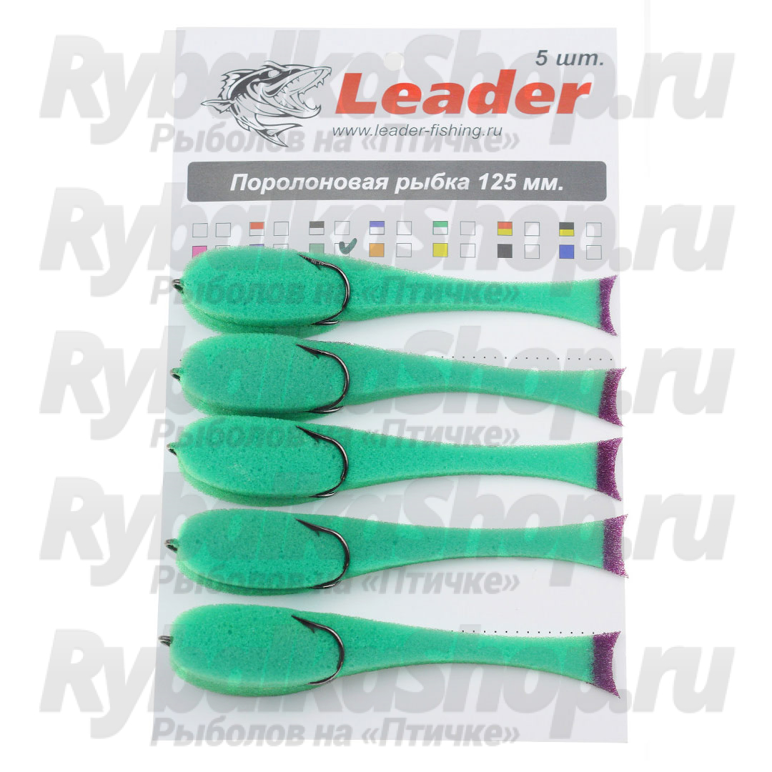 При производстве поролоновых рыбок "Leader" используется качественный, плотный поролон, форма которому придается методом вырезания. Благодаря такой технологии изготовления, рыбки "Leader" отличаются повышенной износоустойчивостью и привлекательной игрой. Эффективная форма приманки была получена на основе испытаний в течение нескольких рыболовных сезонов. Поролоновые рыбки “Leader” оснащены качественными двойными крючками производства Кореи. Жала двойника плотно прижаты к телу рыбки, что, фактически, делает её незацепляйкой, но при этом очень хорошо засекает рыбу. Широкая цветовая палитра позволяет подобрать оптимальный вариант для различных условий ловли. Для увеличения срока службы поролоновых рыбок следует просушивать их после каждой рыбалки. Данная модель поролоновой рыбки "Leader" комплектуется двойным крючком, имеет длину 125 мм и поставляется в упаковке по 5 штук.