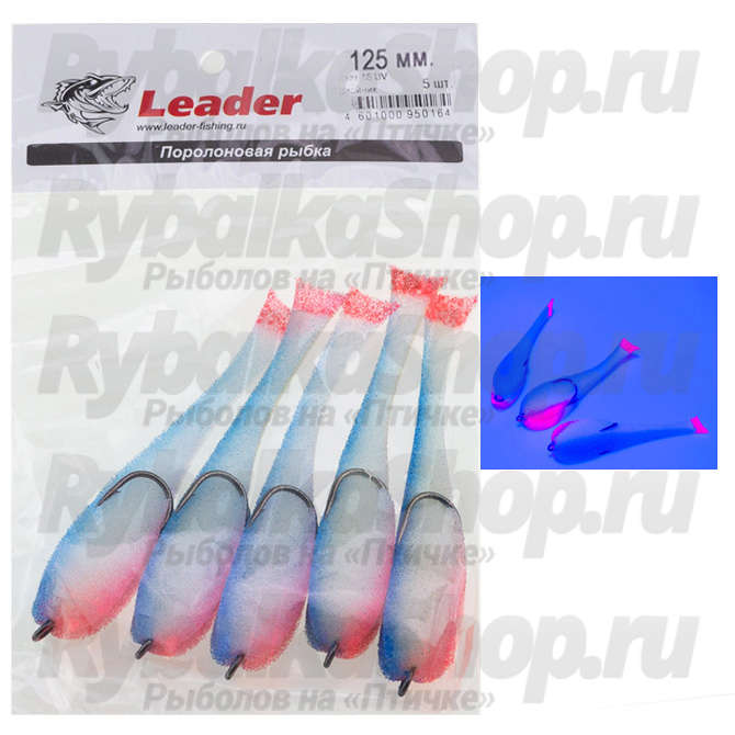 Описание Leader Рыбка поролоновая оснащенная на двойнике 125 мм.