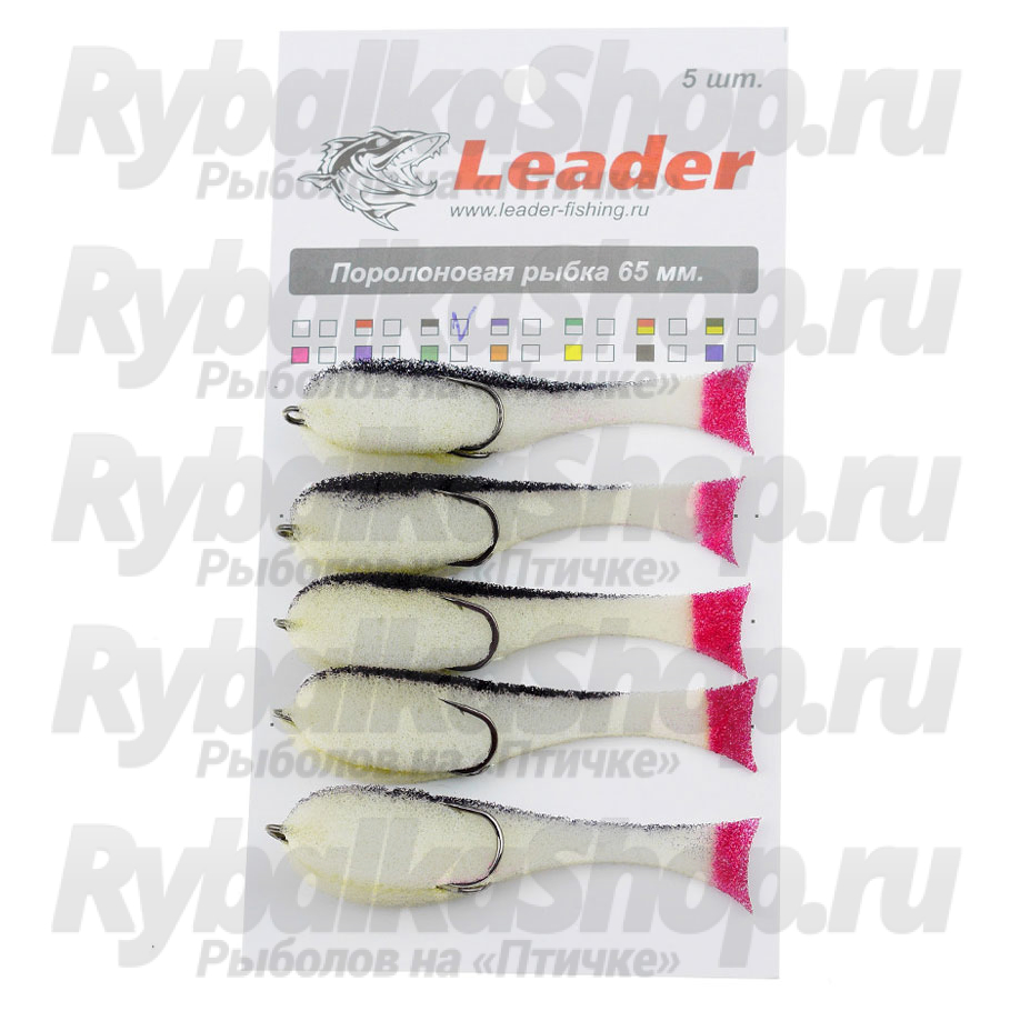 При производстве поролоновых рыбок "Leader" используется качественный, плотный поролон, форма которому придается методом вырезания. Благодаря такой технологии изготовления, рыбки "Leader" отличаются повышенной износоустойчивостью и привлекательной игрой. Эффективная форма приманки была получена на основе испытаний в течение нескольких рыболовных сезонов. Поролоновые рыбки “Leader” оснащены качественными двойными крючками производства Кореи. Жала двойника плотно прижаты к телу рыбки, что, фактически, делает её незацепляйкой, но при этом очень хорошо засекает рыбу. Широкая цветовая палитра позволяет подобрать оптимальный вариант для различных условий ловли. Для увеличения срока службы поролоновых рыбок следует просушивать их после каждой рыбалки. Данная модель поролоновой рыбки "Leader" комплектуется двойным крючком, имеет длину 65 мм и поставляется в упаковке по 5 штук.