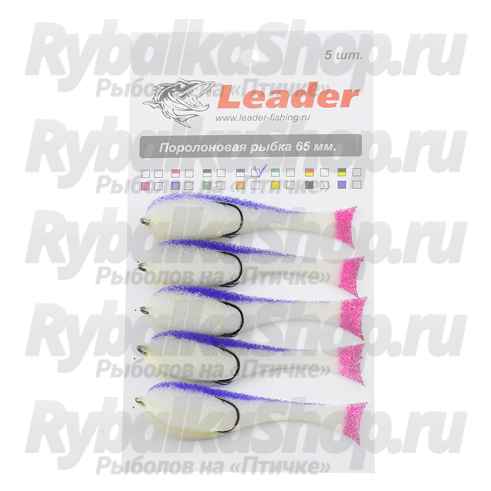 При производстве поролоновых рыбок "Leader" используется качественный, плотный поролон, форма которому придается методом вырезания. Благодаря такой технологии изготовления, рыбки "Leader" отличаются повышенной износоустойчивостью и привлекательной игрой. Эффективная форма приманки была получена на основе испытаний в течение нескольких рыболовных сезонов. Поролоновые рыбки “Leader” оснащены качественными двойными крючками производства Кореи. Жала двойника плотно прижаты к телу рыбки, что, фактически, делает её незацепляйкой, но при этом очень хорошо засекает рыбу. Широкая цветовая палитра позволяет подобрать оптимальный вариант для различных условий ловли. Для увеличения срока службы поролоновых рыбок следует просушивать их после каждой рыбалки. Данная модель поролоновой рыбки "Leader" комплектуется двойным крючком, имеет длину 65 мм и поставляется в упаковке по 5 штук.