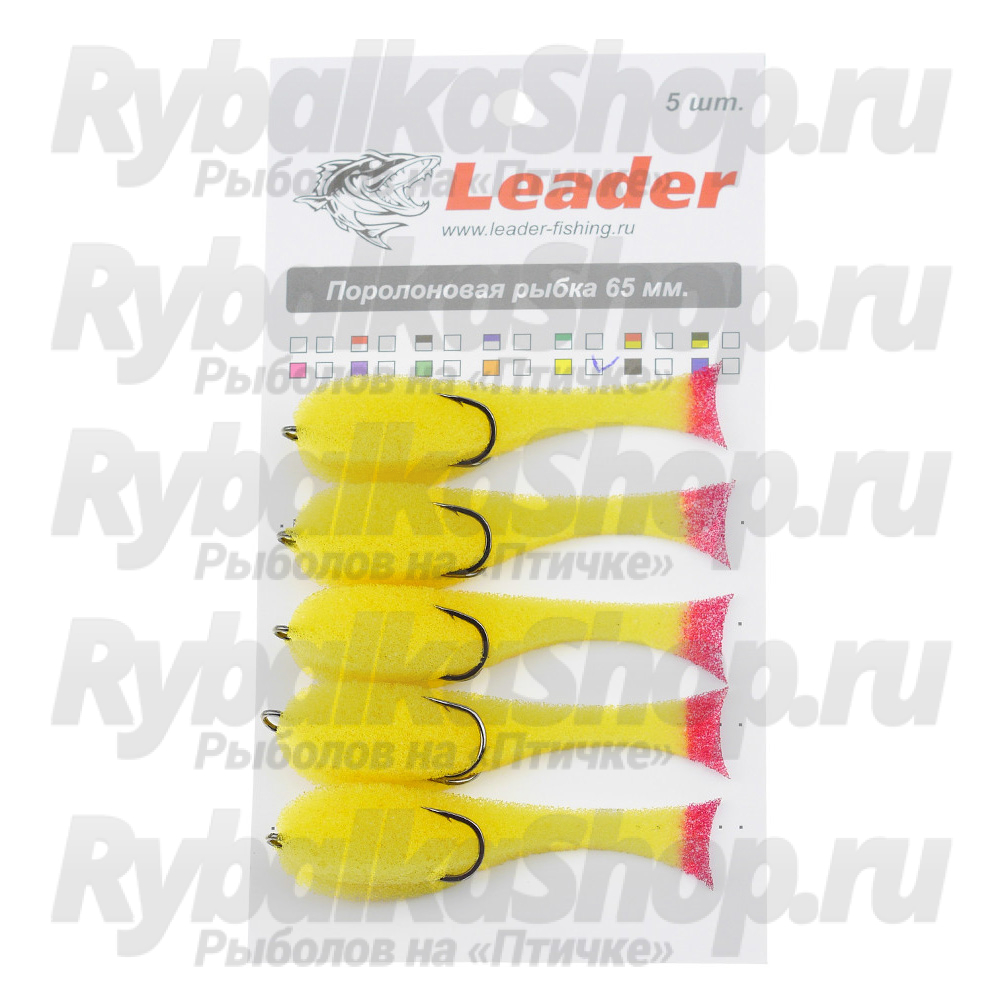 Рыбка поролоновая Leader оснащенная на двойнике 65 мм. Цвет 06 упак. 5 шт.