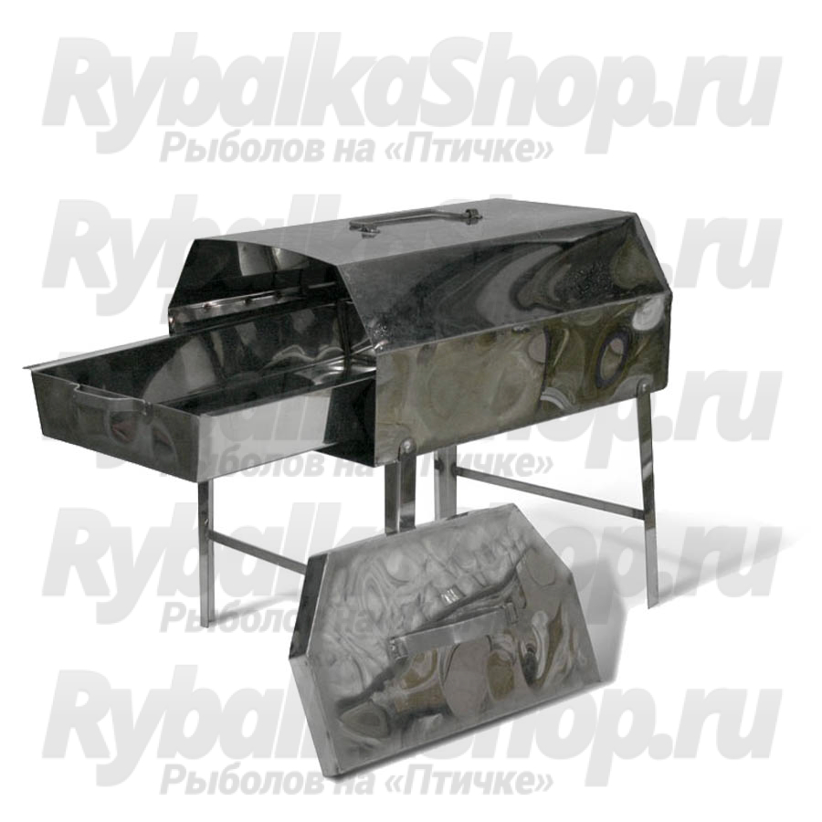 Духовой шкаф для костра «Уралочка», габаритные размеры – 290х180х400, высота ножек – 230 мм, вес – 4,5 кг, материал – нержавеющая сталь AISI 430.