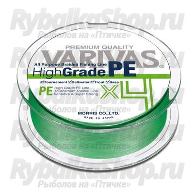 Varivas High Grade PE x4 - обновленная версия популярного 4-х жильного PE-шнура от японского производителя. Универсальный шнур для соленой и пресной воды премиального качества. При производстве используется новая технология скручивания нитей, за счет чего достигается повышенное качество и стабильность по всей длине шнура. Фирменное защитное покрытие с тефлоном SP-F надежно защищает шнур от внешних факторов, делает его более скользким и износоустойчивым.