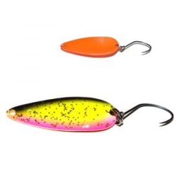 Блесна «CВАЛ» имитирует определенную стадию развития водяных насекомых и в частности водяных клопов. Ее уникальность состоит в возможности выполнения проводки на самых умирающих, затухающих стадиях. За счет своей сложной геометрии она как бы опирается на воду и парит в ней, играя, практически без подмотки лески. Любая рыба, в том числе и самая вялая и запрессованная форель не пропустит такой максимально ослабевший объект охоты, который буквально валится ей в рот.