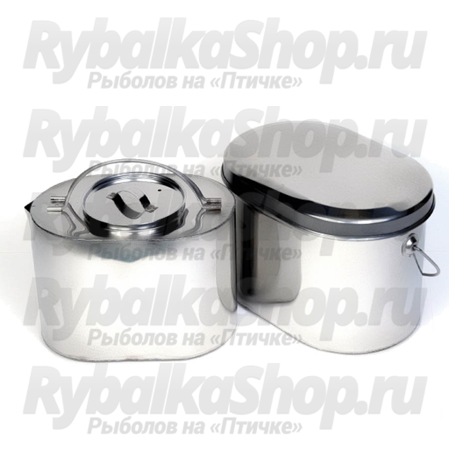 Набор туристической посуды. Состав набора: котелок (кан), чайник походный. Материал – нержавеющая сталь AISI 304.