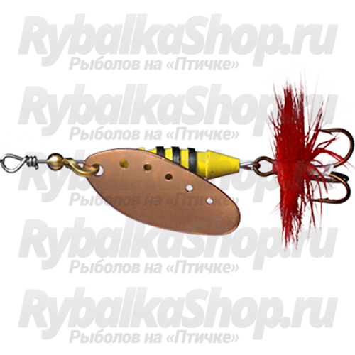 Блесна MYRAN STING 12g - это вращающаяся блесна оснащена акустическим лепестком с отверстиями для дополнительного шумового эффекта. И желтым сердечником с черными полосками, имитирующими пчелу или осу. Крючок оснащен мухой. Блесна довольно компактна, при этом она имеет большой вес, что позволяет осуществлять дальние забросы. Маленький вариант блесны подходит для ловли форели, хариуса, окуня и всей речной бели.