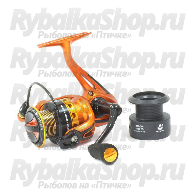 Безынерционные катушки Axiom от рыболовного бренда Black Side имеют отличные технические данные при весьма невысокой цене. Серия безынерционок, выполненная в ярком эффектном дизайне, представлена тремя моделями с индексом 2000, 2500 и 3000. Все катушки имеют одинаковое передаточное число - 5,2:1. Качественную и плавную работу механизма обеспечивают 8 шариковых подшипников и 1 роликовый. Для изготовления главной пары использовались сталь и бронза.
