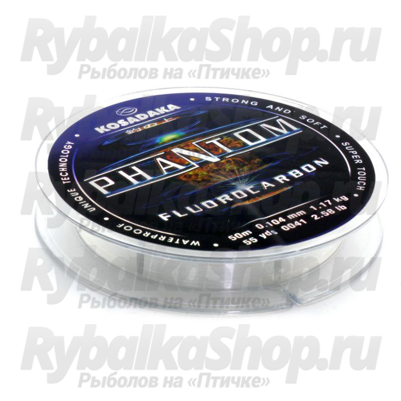 Полностью прозрачная флюорокарбоновая леска Kosadaka Phantom. Используется как основная леска для всех видов рыбной ловли, а также как поводковая леска при ловле осторожной рыбы.