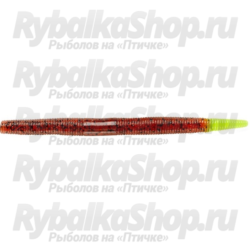 Yum Dinger - это толстый, круглый, быстро тонущий червь. Приманка абсолютно не имеет собственной игры, но, не смотря на это, она способна привлечь многих хищных и мирных рыб, которые не прочь поживиться такой легкой добычей. Вопреки полному отсутствию собственной игры, червь все же привлекает к себе внимание рыб ярким вкусным ароматом. Считается, что особенно хорошо эта приманка-червь работает по крупному окуню. Yum Dinger превосходно подойдет для оснастки Waky. Так же ее можно использовать джиговым способом на джиг-головке или шарнирном монтаже. Предлагается производителем в нескольких размерных вариациях: четыре, пять, шесть и семь дюймов.