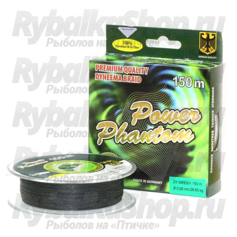 Шнур Power Phantom 4x, 150м, зеленый, 0,30мм, 35,7кг