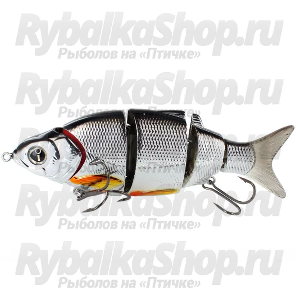 представляет собой многосоставной свимбейт, имитирующий движение настоящей рыбки, причем в зависимости от цвета разной. Серия данных приманок состоит из нескольких моделей, отличающихся по размеру, весу, плавучести, и с длиной 80 мм эту версию можно отнести приближенно к классу лайтовых.Конструкция из нескольких прочно, но гибко скрепленных частей, при движении под водой выглядит потрясающе реалистичной, движения плавны и похожи на природные. Приманка сделана из прочного пластика, окраска стойкая, поверхность рельефная, схожая с настоящей рыбкой, карасиком, окуньком, плотвой. Воблер выполнен в медленно тонущей конфигурации, и при попадании в воду начитает свое плавное погружение. Чутко откликается на манипуляции с собой, будь то плавная проводка, или рывковые движения. Составное тело позволяет приманки извиваться в плавных гибких движениях.