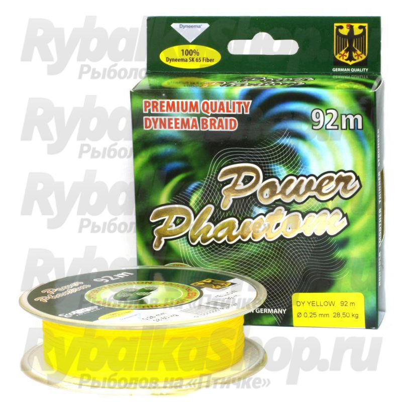Шнур Power Phantom 4x, 92м, желтый, 0,18мм, 18,35кг