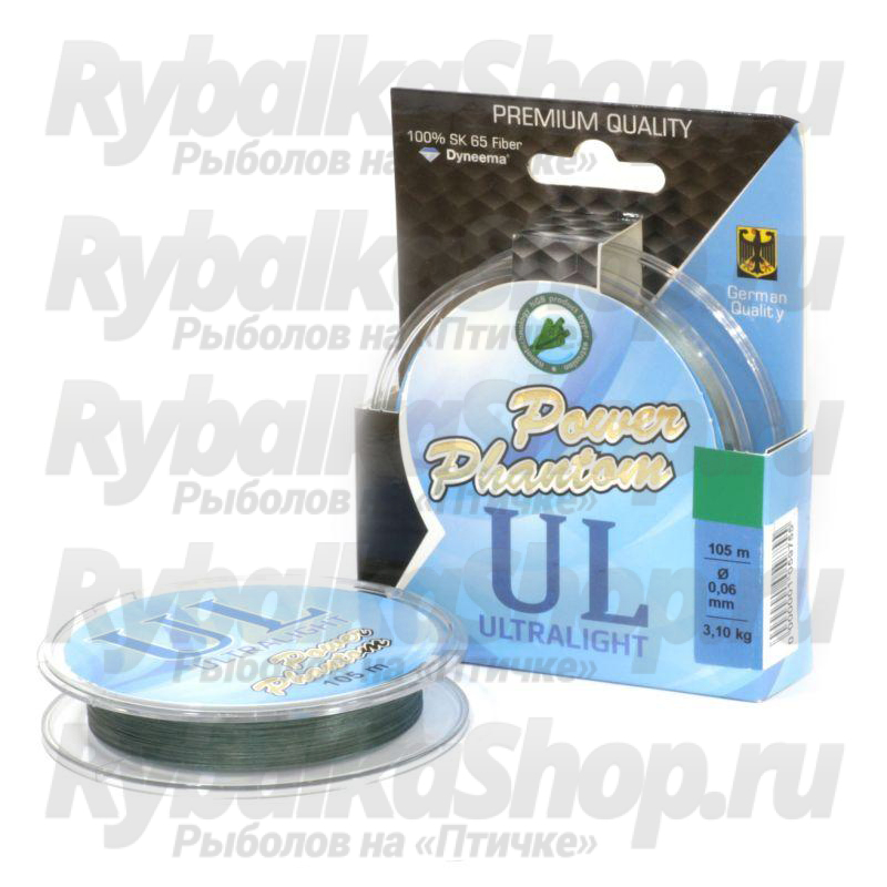 Шнур Power Phantom 6x, UltraLight, 105м, зеленый, 0,08мм, 3,6кг