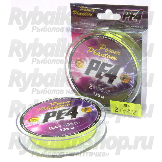 PE4 от фирмы Power Phantom изготовлен из из качественного PE-материала и имеет четырехжильное плетение. Данная серия плетенок отличается значительно увеличенным сроком службы и повышенной прочностью. Мягкие шнуры имеют очень гладкую поверхность, что позволяет улучшить скольжение сквозь кольца и дальность заброса приманки. Шнуры Power Phantom PE4 практически не имеют эффекта остаточной памяти, отличаются минимальной растяжимостью и неплохой тактильной чувствительностью. Линейка выпускается в двух вариантах расцветки - зеленый и “мультиколор”. Большой выбор размоток и самые актуальные диаметры позволяют применять серию шнуров на любых водоемах и для разных методов ловли.