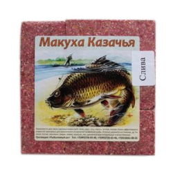 Макуха Казачья – это брикетированная смесь жмыха подсолнечника и других натуральных зерновых компонентов, состав которых держится в секрете. Чтобы результат ловли был успешным, в данную смесь добавляют ароматизаторы. Производитель выпускает больше 20 различных запахов, которые привлекают рыбу. Вы легко сможете подобрать нужный вам аромат, подходящий под ваши условия ловли. Упаковка состоит из 9 кубиков общей массой 450 гр.
