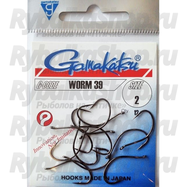 Большой крючок Gamakatsu Worm 39 (BL) из легкой проволоки, идеально подходящий для метода ловли дроп-шот, а также для ловли на живые приманки.