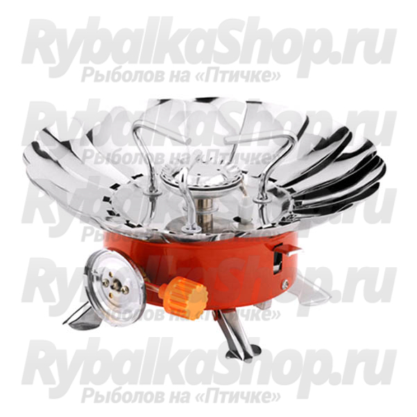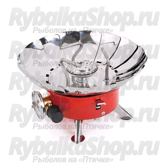 Туристическая горелка Веер с ветрозащитой GR-201 Корея. Область применения данной газовой горелки - в домашних условиях, на даче, на пикнике, кемпинге, в лодке во время рыбалки или на охоте.Стальная регулируемая по высоте ветрозощита не только защитит сопла горелки от ветра и осадков, но и направят всё тепло вверх, что ускорит кипячение в любую погоду и заметно уменьшит расход газа.