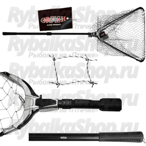 Подсачек GRFISH телескопический Titan, алюминиевый блок, сетка - теннисный корд, ячейка 30 мм.