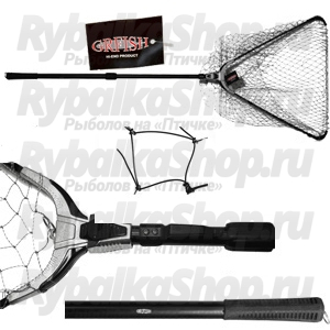 Подсачек GRFISH телескопический Titan, размер 70*70см, алюминиевый блок, сетка - нейлон, ячейка 30мм.