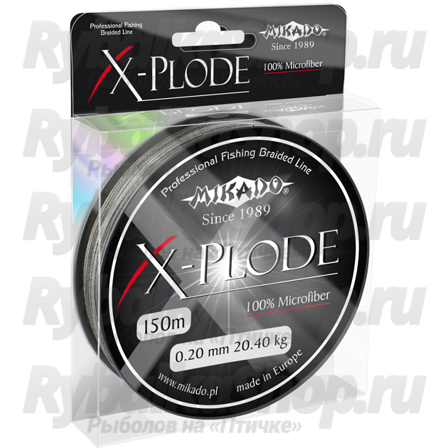 Сверхпрочная плетеная леска из волокна microfiber, обладающего большей разрывной нагрузкой, в сравнении с классическими плетенками из Dyneema. Каждый шнур от 0,04 до 0,25 состоит из 4 сплетенных между собой нитей, покрытых полимерным покрытием, и содержащих десятки тончайших волокон. Таким образом, повреждение шнура в процессе эксплуатации не приводит к значительному снижению разрывной нагрузки. Плетенка X-plod практически нерастяжима, устойчива к скручиванию и обладает очень высокой прочностью на узлах. Круглое сечение и не значительное трение о кольца способствуют выполнению дальних бросков.