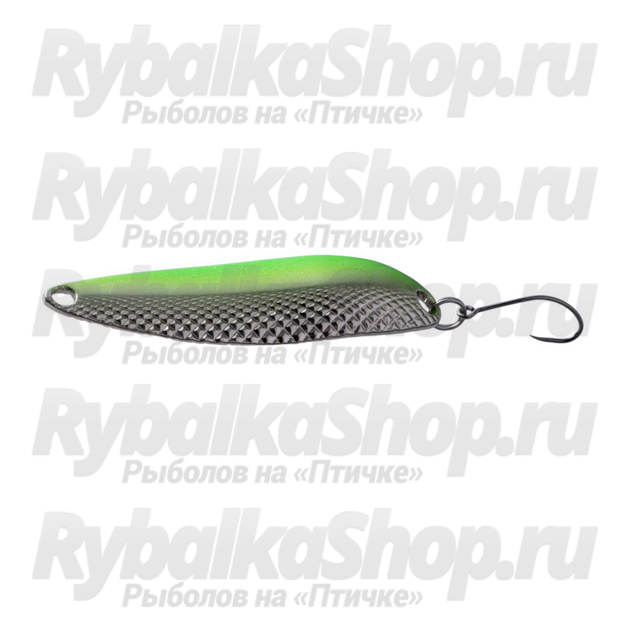 Часть поверхности блесны имеет ромбовидные грани, которые увеличивают заметность приманки в воде.