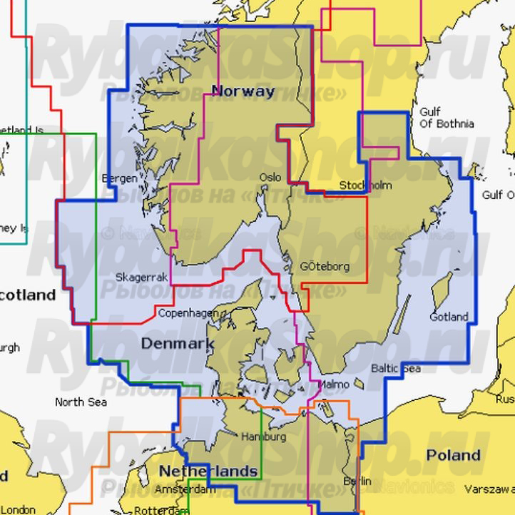 Дания, Германия (от Делфзейл в Нидерландах до Колобжег в Польше), Норвегия от Флеккенфьорд до Эланд в Швеции. Включает Скагеррак, Каттегат, Осло, Копенгаген, Гетеборг, Борнхольм, Зеландия, Лоллан, озера Финляндии и Германии.