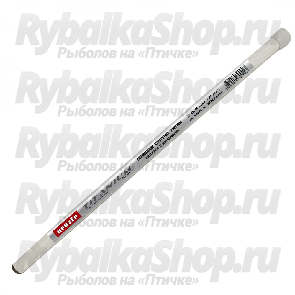 Титановые поводки ПРИЗЁР изготавливаются в различных длинах и диаметрах. Поводки упакованы в практичный пластиковый тубус по 10шт.