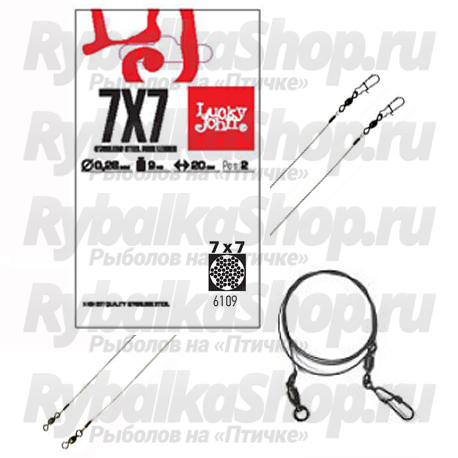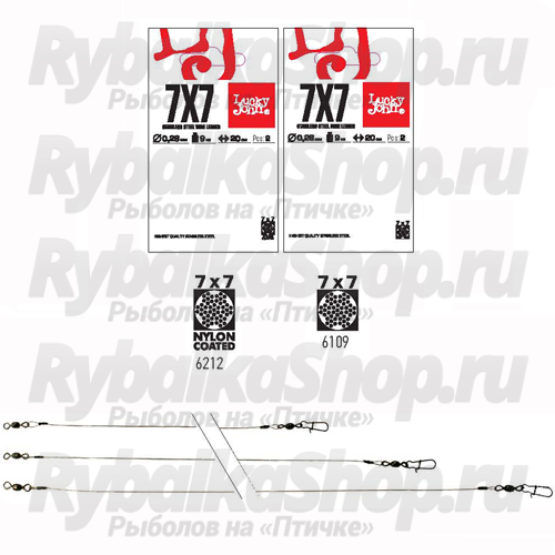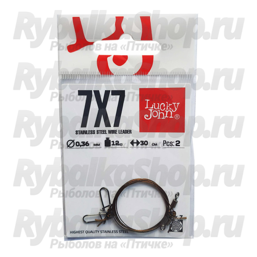 Поводки стальные Lucky John Pro Series 7x7 Stainless Steel Wire AFW оснащ. вертл. и застеж. покр.нейлон d 0,36мм /12кг/25см/2шт.