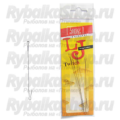 Поводки Lucky John String Twitch (7218) из гитарной струны с замком-скруткой, надежно заменяющим застежку, и позволяющим за секунды менять приманку. Используются ведущими спортсменами страны и практикующими спиннингистами. Специальные поводки разработанные для ловли на TWITCH приманки. Тест поводков – 15 кг.