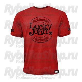 Хлопковая футболка Lucky John красная AM-157 с короткими рукавами. Цвет красный, на передней части модели, на рукавах и спинке принты.