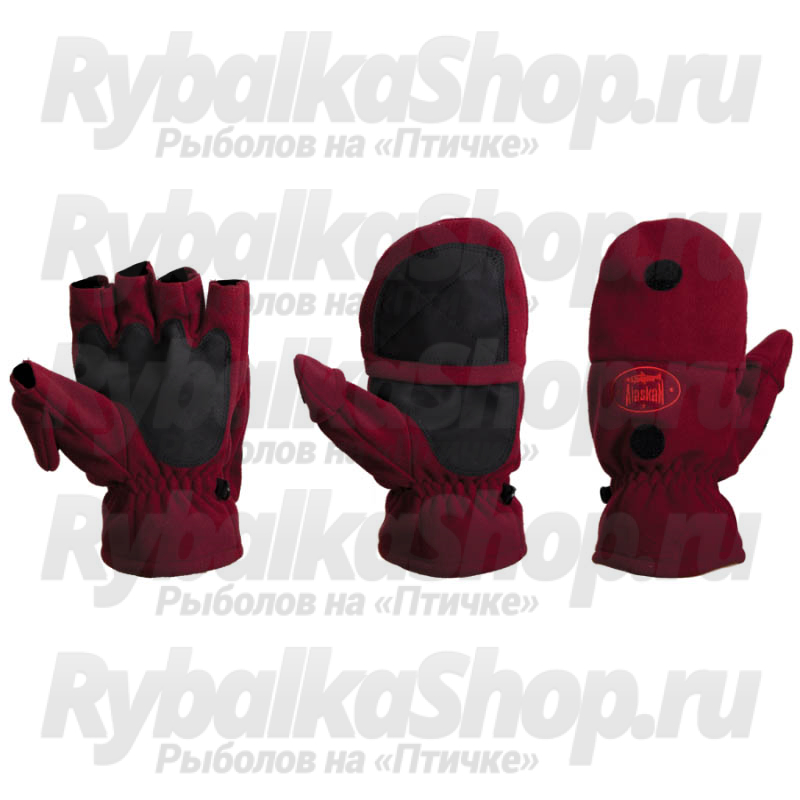 Перчатки-варежки Alaskan Colville Бордовый с застежкой «Велкро» (липучка) для фиксации откидного элемента изготовлены из флиса с функцией Wind Stopper. Эта модель может быть использована как с закрытыми, так и с открытыми пальцами. Внутренняя сторона (ладони) дублирована непромокаемым материалом, который не дает перчатке намокнуть, даже если Вы берете рыбу в руки, не снимая перчаток.