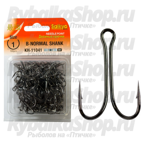 Saikyo Normal Shank KH-11041 BN - кованые двойные крючки высочайшего качества с обычным цевьем. Применяются для ловли на искусственные приманки и на живую насадку. Могут применяться при оснащении жерлиц, кружков и прочих пассивных оснасток. Великолепная заточка жала.