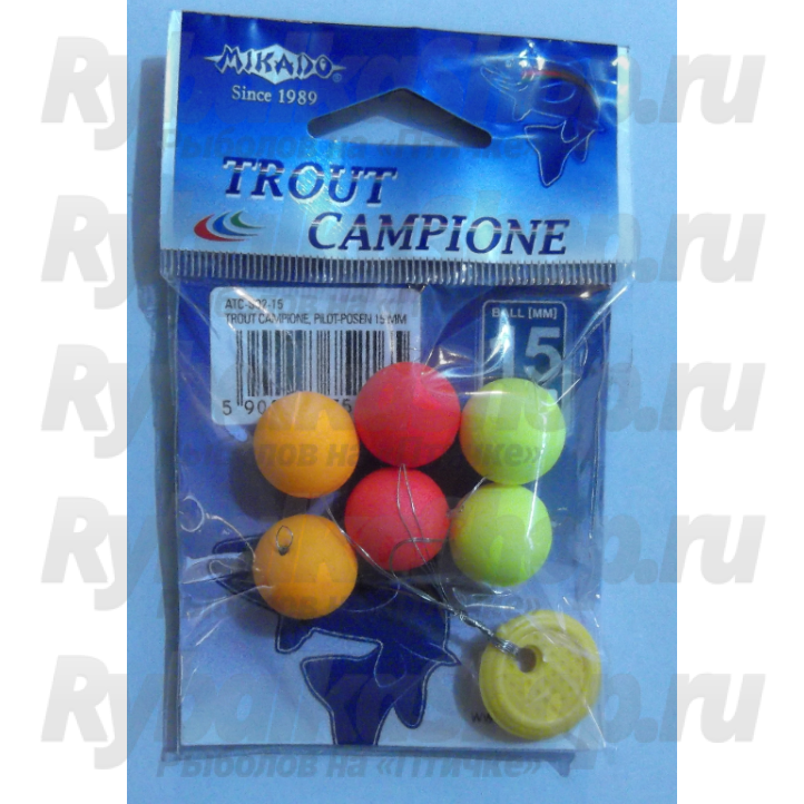 Стопоры Mikado Trout Campione Float Balls д.15мм ( 6шт.) пенопл., круглые (Арт.ATC-S02-15)