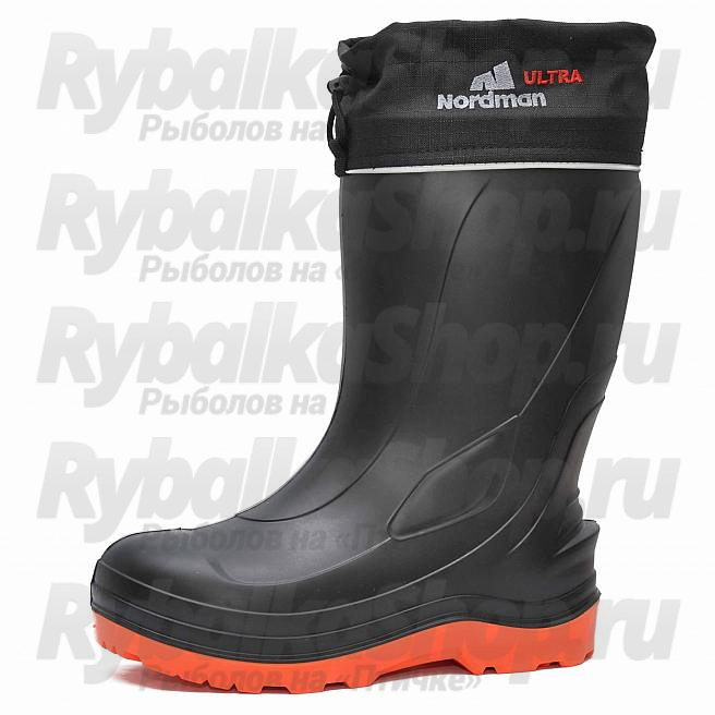 Сапоги Nordman Ultra, ЭВА, утепленные флисом, с манжетой, черные с оранжевой подошвой (44)