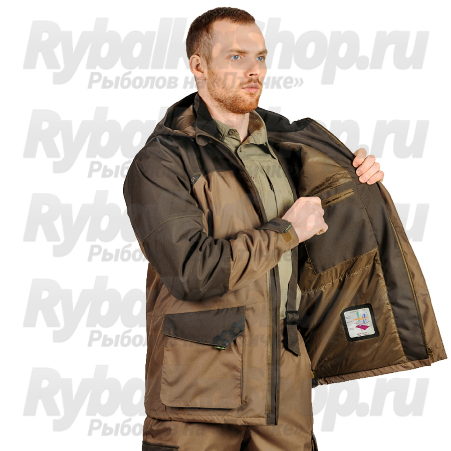 Куртка длинного кроя с высоким штормовым воротником. Капюшон регулируется по внешней кромке и по глубине посадки. Водозащищённая молния с центральной встречной планкой на магнитных застёжках. Ширина проёма рукава регулируется патами на липучке. Нижние два накладных кармана с клапанами на магнитной застёжке дублированы врезными карманами. Врезной карман находится под центральной планкой и надёжно защищён от попадания влаги. С левой стороны приварен нагрудный карман с водозащищенной молнией. Ширина низа куртки регулируется шнуром-резинкой
