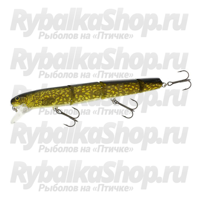 Движения длинного составного воблера Westin Jatte Multi Jointed 170 своей плавностью напоминают змею. Минноу размером 17 см состоит из 4 секций и весит 43 грамма. Он погружается на 2 - 4 метра и поможет обловить и спокойные озера, и широкие реки. Использовать его можно не только рыбача с берега, но и с плавсредства. Выверенная балансировка позволяет воблеру не сбиваться на любой скорости. Широкая, не очень длинная лопатка помогает приманке "оживать" на простой равномерке и Stop & Go. Причем способ "Потяжка/Пауза" особенно хорош на пассивной, капризной зубастой хищнице