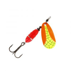 Специально разработанный латунный лепесток отражает свет под разными углами. Он начинает вращаться при минимальной скорости проводки и создает такие импульсы, которые  провоцируют на атаку  пассивную хищную рыбу.
