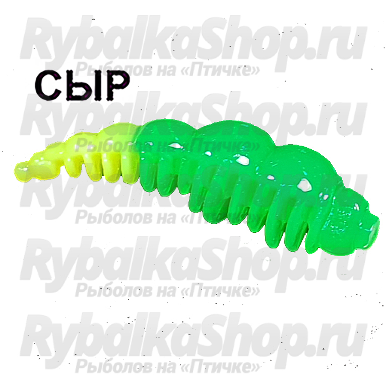 Силиконовая приманка Boroda Baits Larva Double Color цв. Зелёный/Лимон, аттр. Сыр.