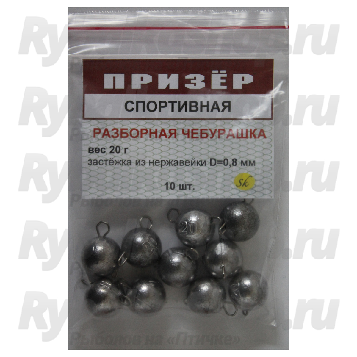 Призёр Чебурашка (Спорт) предлагается в широком диапазоне веса: от 1 до 85 грамм. Разборные грузы применяются для оснасток с офсетными крючками. Благодаря удачной конструкции "чебурашек", очень просто и быстро возможно осуществить как замену самого груза в оснастке, так и смонтированного офсетного крючка.