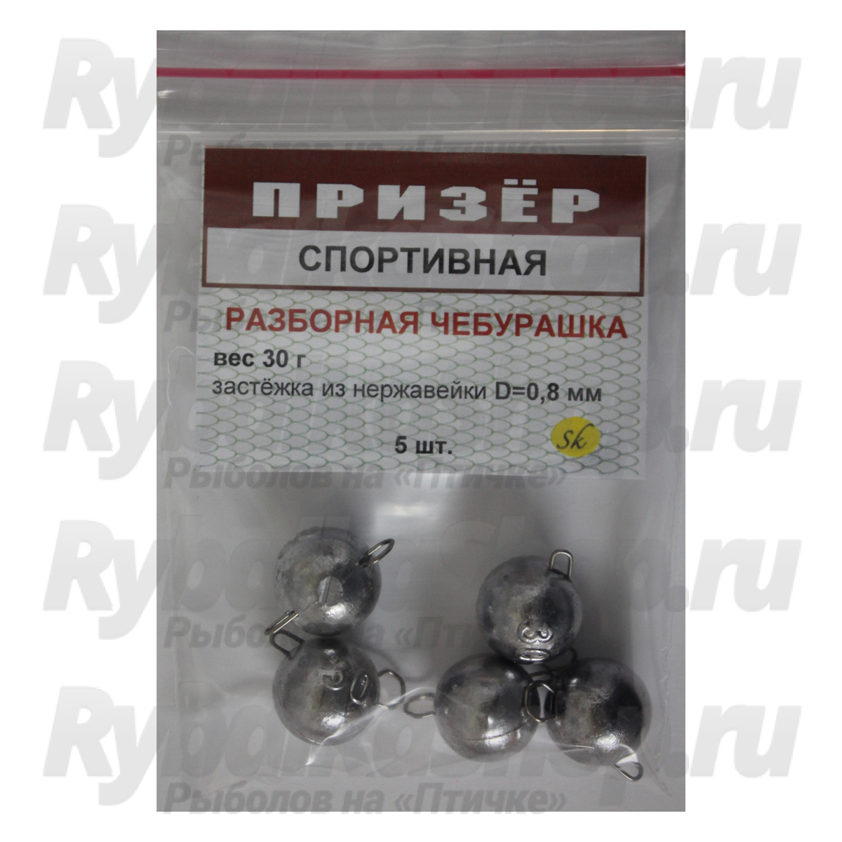 Призёр Чебурашка (Спорт) предлагается в широком диапазоне веса: от 1 до 85 грамм. Разборные грузы применяются для оснасток с офсетными крючками. Благодаря удачной конструкции "чебурашек", очень просто и быстро возможно осуществить как замену самого груза в оснастке, так и смонтированного офсетного крючка.